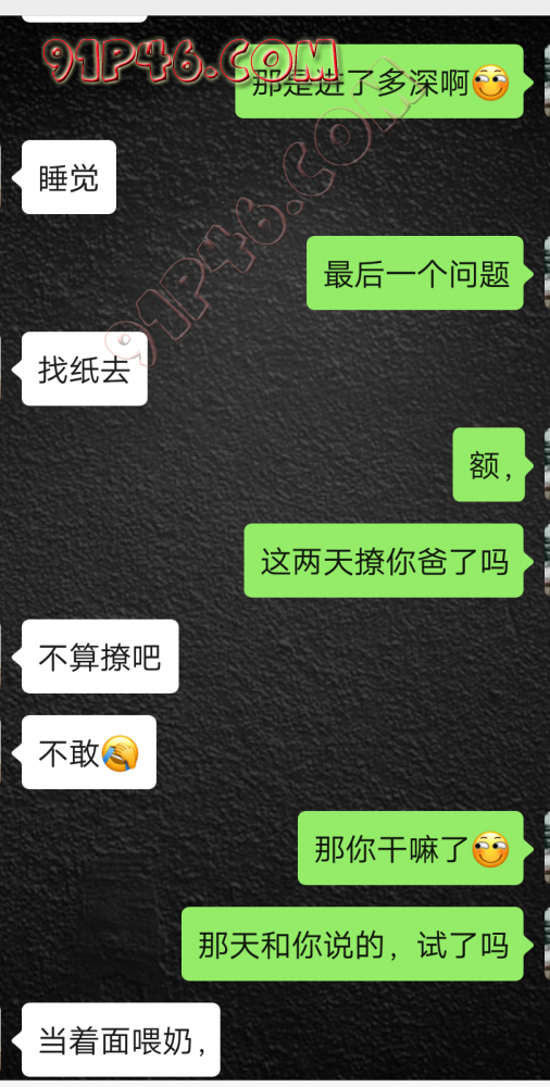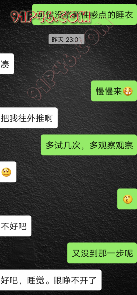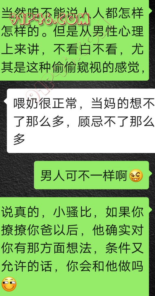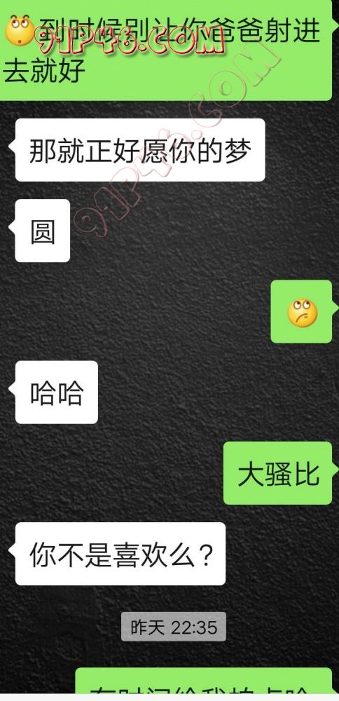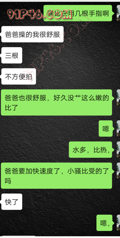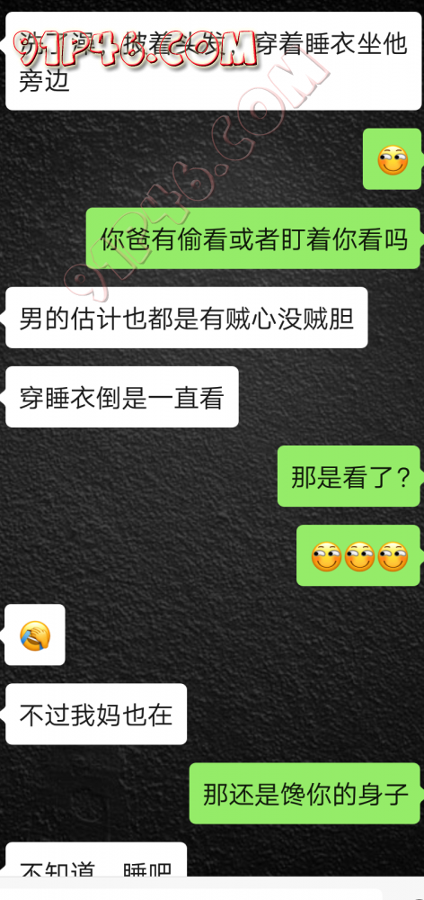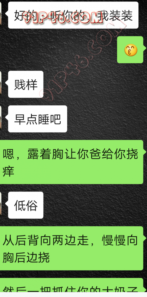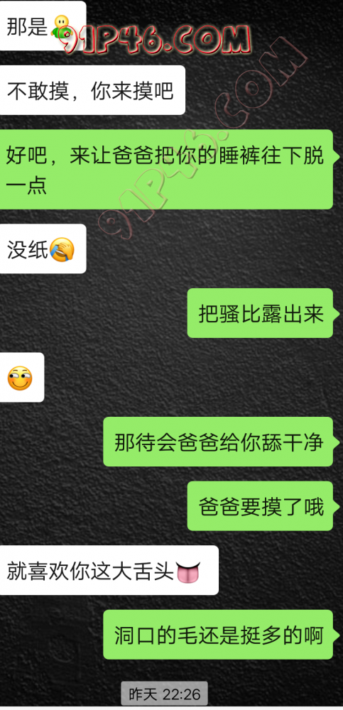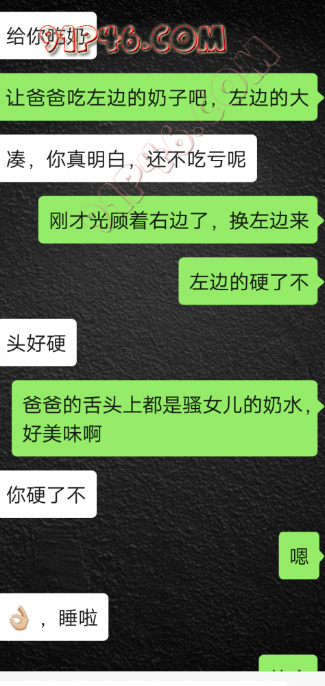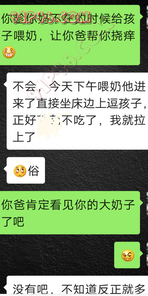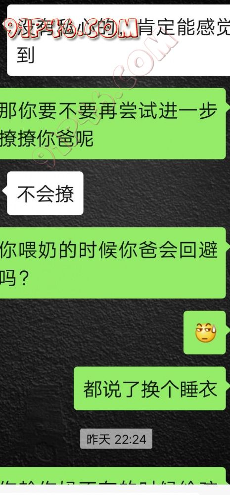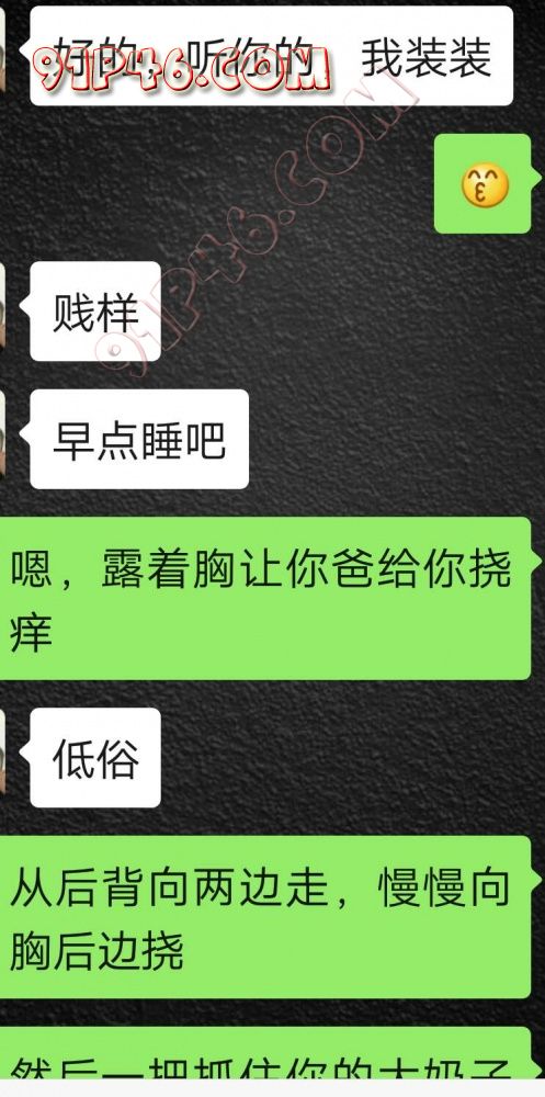 逛91也有几年了,发帖并不多,简单介绍下,男29.女27,颜值、身材、条件都一般,我的话顶多就是淫妻心理,不是绿帽!老婆其实并不太开放,更多的是迎合我,以及被我开发调教的结果,或许女人都有这个潜质吧,只是遇到合适的人了。我俩开始的挺意外的,就是玩玩的心态,想着都是同事,吃点豆腐,最好能来一炮,不怕笑话,我21的时候还是处男,老婆交往过两个,只和一个有过,毕竟我俩认识那会儿她才18,她当时有个异地的对象,但是感情不算稳定,然后稀里糊涂的就处上了,在一起住了一年多,家里就催着结婚了。提前得交代的一下是,我确实比较好色,还有点特殊癖好,所以玩的花样比较多,意外的是慢慢的发现她接受能力挺强,外出带跳单,家里玩玩具,情趣内衣,都是初期就接触的,后来她换了工作和同事合租,她们在2楼,我和未来小舅子在1楼,期间经常我去她宿舍留宿或者她下来在我的窝里过夜,值得一提的是2楼是一间屋里两个单人床,中间间隔有一米多点,什么格挡也没,楼下更是只有一个双层床,所以,当时那种激情场景不知道各位能否想象的到,压抑中,偷偷的嘿咻。可能也是她的这种配合和对我的纵容,才能让我对她一步一步的开发吧,再后来结婚回了老家发展,淫妻癖越发严重,换图、交网友.....怎么说呢,有一个爱我和配合我的女人,挺幸运的,但是人的心理永远不会满足。前段时间看论坛里几个大神的贴,就是勾引公公的,火的帖子好像得3个了吧,可惜啊,都太监了,不过倒是越来越引起我的淫妻欲了,虽然之前和老婆做的时候也会玩玩角色什么的,但今年却越来越沉迷当中,日常做的时候让她喊爸爸什么的也都能配合。最近把老婆送回老家了,顾及时在那边待的寂寞了,所以就有了下边的聊天内容,也就有了今天的帖子,先声明一下,自认为女儿和亲爹通奸的剧情不太容易在闲事里发生,所以也没过多的奢望能发展到什么样。好了,废话了这么多,各位看官来看聊天截图吧。 今天继续更