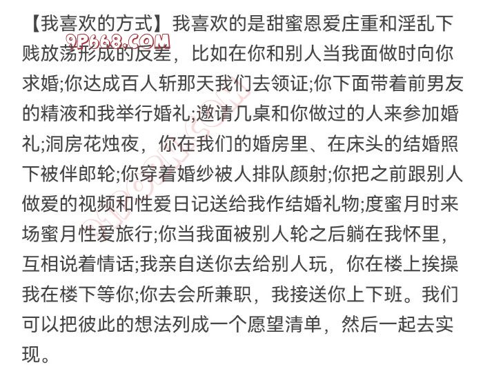 当然,这只是我们想到的。如果你有什么好的玩法,可以提出来,大家商量。我和老婆能接受的,都会安排进来!